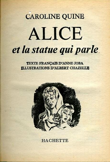 Alice et la statue qui parle, by Caroline QUINE Hachette Bibliothèque VERTE Dépôt légal 1977