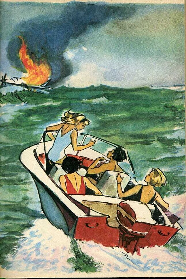 Tout épuisé qu’il était, le jeune homme – il semblait avoir vingt ans – réussit à sourire. Tandis que Bess et Alice le tenaient par les poignets, Marion ramait aussi vite qu’elle pouvait vers la plage. Plusieurs maîtres nageurs arrivèrent à la rescoussse.