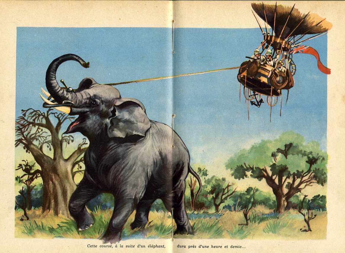 Cette course, à la suite d’un éléphant, dura près d’une heure et demie…   page 88 & 89
