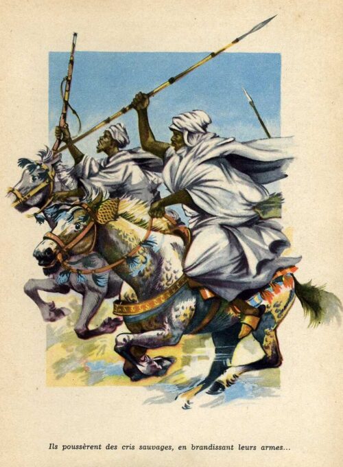 Ils poussèrent des cris sauvages, en brandissant leurs armes…   page 213