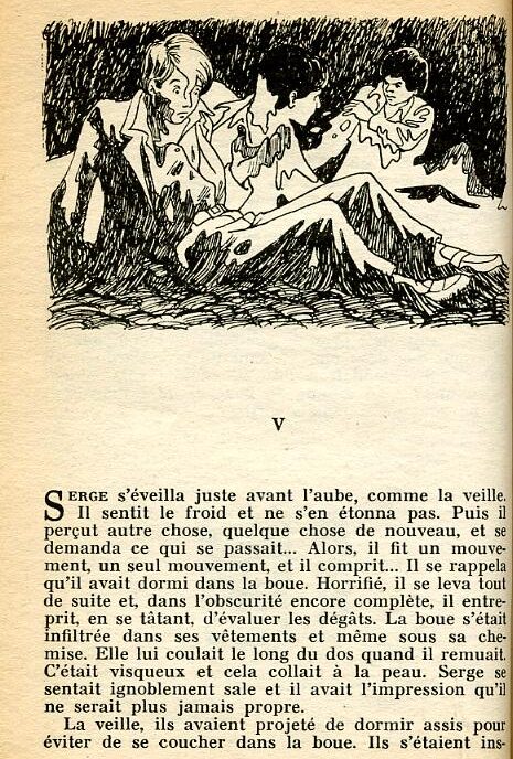 Il y eut un silence très long, interminable. Serge essaya vaguement de réfléchir, mais il n’avait pas une idée sous le crâne. Il vivait dans une torpeur brûlante, les yeux mi-clos, presque inconscient de ce qui l’entourait. Les deux autres ne remuaient pas plus que lui, comme s’ils voulaient économiser leurs mouvements, trop heureux d’avoir pu trouver une étroite zone d’ombre où le sol n’était pas trop chaud, où leurs membres échappaient à la morsure du soleil. De temps en temps, un des trois se relevait et s’asseyait un peu plus loin, pour rester dans la zone tiède, dans la région étroite où la vie était possible. Quelques centimètres plus loin, l’enfer commençait…