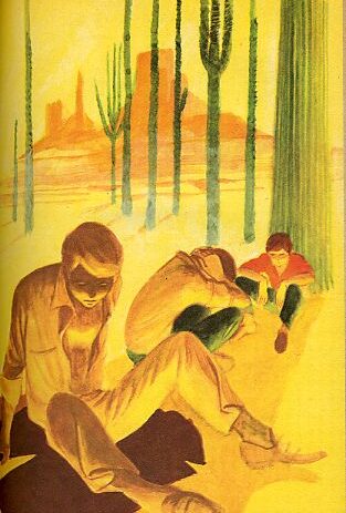 Il se rendait compte que le canif serait beaucoup plus utile que le dollar retrouvé dans la poche de Marc, et il voulait le ménager à tout prix. Il avait cru que le cierge du désert serait facile à entailler, car il avait lu quelque part que les cactus contenaient une forte proportion d’eau, et il était assez déçu.