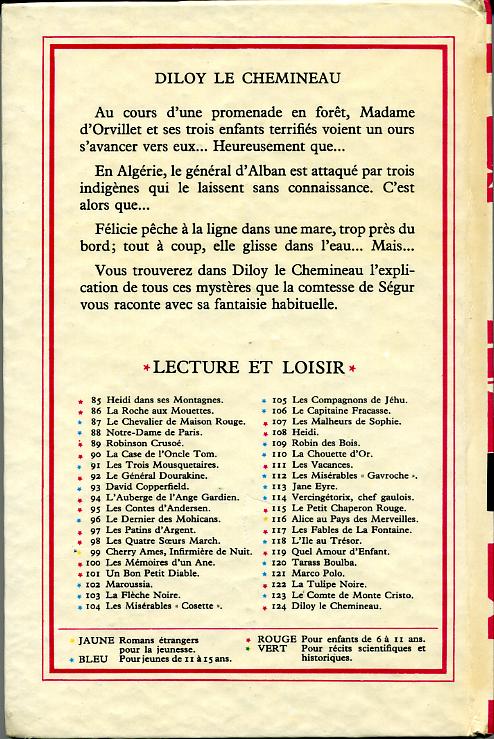 Diloy le chemineau, by Comtesse de SEGUR Librairie Charpentier Lecture et Loisir n° 124 Dépôt légal 1968