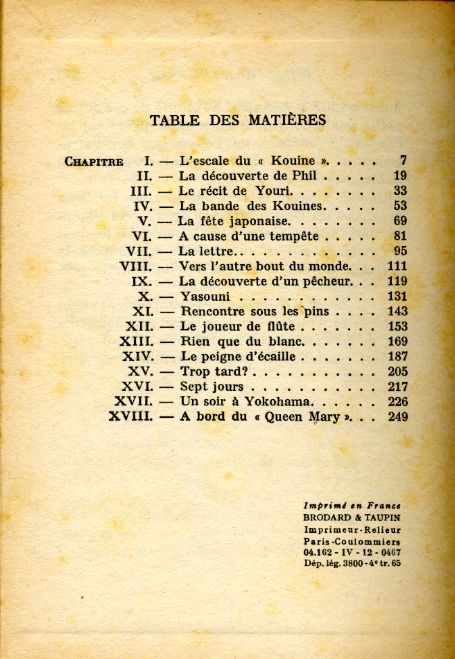 Phil la conduit chez sa mère qui la réconforte et consent à la garder. Une touchante amitié unit les deux enfants. Mais, un jour, Youri disparaît, aussi mystérieusement qu’elle est venue. Pendant des mois, Phil va vivre dans l’inquiétude. Enfin le voilà qui décide de s’embarquer pour le Japon, avec le fol espoir de renouer le fil rompu de l’amitié… C’est une merveilleuse aventure dont P.-J. Bonzon fait le récit, en des pages pleines de couleur et de vibrante émotion.