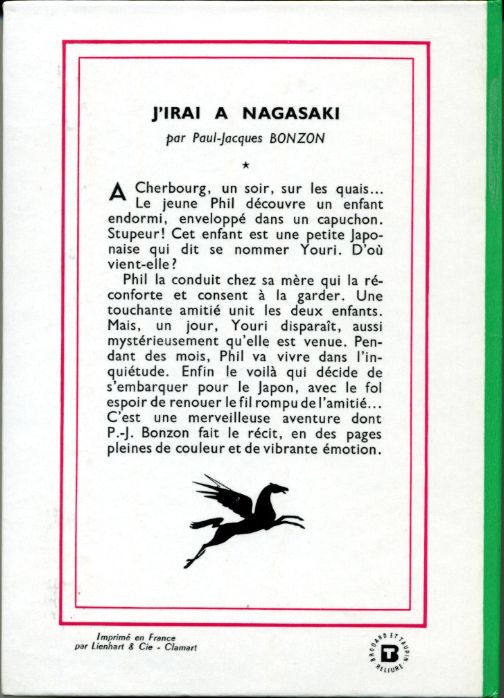 J’irai à Nagasaki, by Paul Jacques BONZON Hachette Bibliothèque verte n° 178 Dépôt légal 65