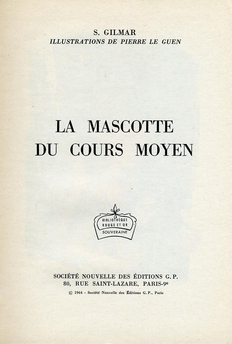 La mascotte du cours moyen, by S. GILMAR Société Nouvelle des Editions G.P. Paris Bibliothèque Rouge et Or Souveraine Dépôt légal 1964