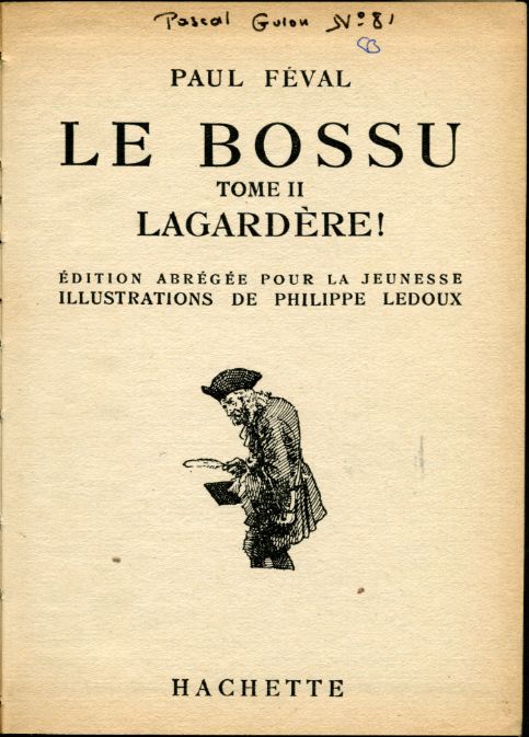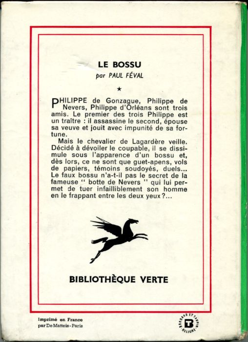 Le bossu, by Paul FÉVAL Hachette Bibliohèque verte n° 73 Dép. lég. 58