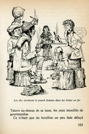 Les dix sirotèrent le punch fumant dans les boîtes en fer. p. 103