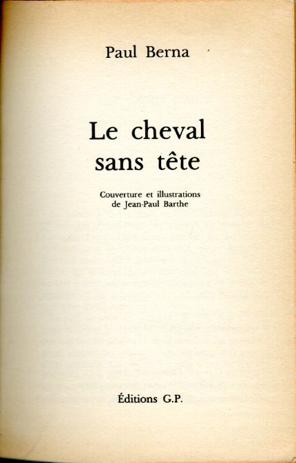 Le cheval sans tête, by Paul BERNA Le Livre de Poche Jeunesse n° 34 Dépôt légal 1985