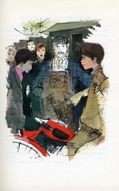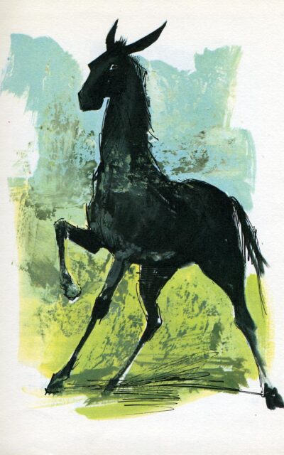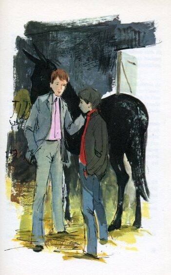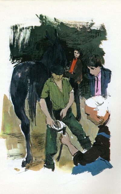 Après leur départ, les abords de la stalle restèrent déserts un long moment, et c’est durant cette pause que survint un grand garçon moqueur, nommé Langlais, ennemi intime et condisciple de Charlie en première moderne. Il fit d’abord le tour du mulet sans mot dire, lui caressa le chanfrein et le dessous des ganaches, passa la main le long de son encolure, regarda ses dents, ses quatre sabots cirés de frais, l’intérieur de ses oreilles, et termina son inspection en hochant la tête d’un air approbateur. Boby, très étonné par cette désinvolture, l’avait regardé faire avec intérêt :