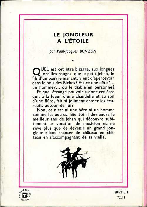 Le jongleur à l’étoile, by Paul Jacques BONZON Hachette Bibliothèque rose Dépôt légal 1972 1974