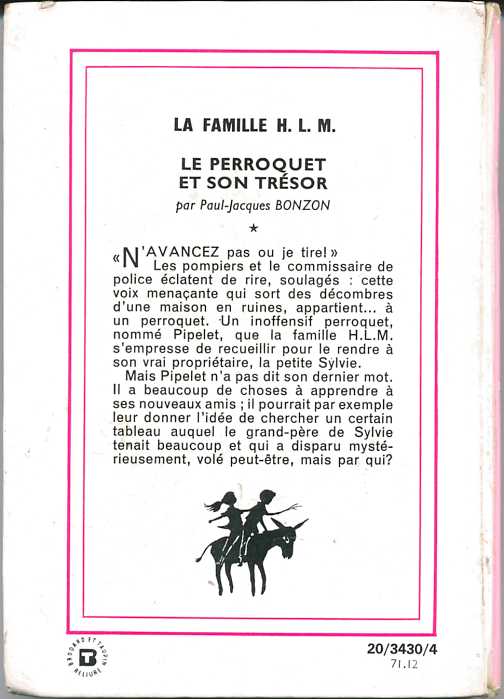 Le perroquet et son trésor, by Paul-Jacques BONZON Hachette Bibliothèque rose Dépôt légal 1971 – 1975