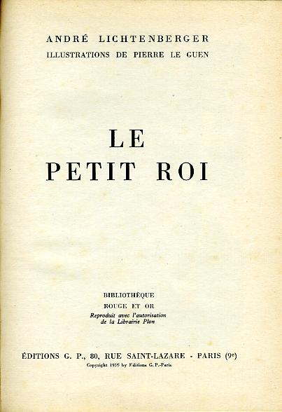 Le petit Roi, by André LICHTENBERGER Editions G.P Paris Bibliothèque Rouge et Or