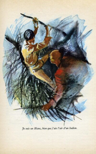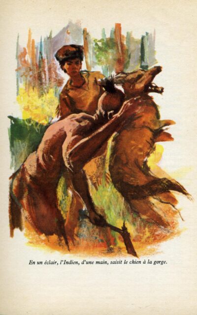 En un éclair, l’Indien, d’une main, saisit le chien à la gorge. p. 51