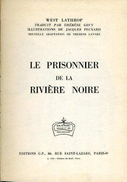 Le prisonnier de la rivière noire, by West LATHROP Editions G.P. Paris Bibliothèque Rouge et Or Souveraine
