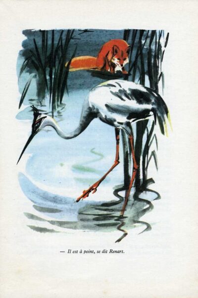 – Hé! frère Renart, appelle-t-il, je crois que mon filet doit être plein. Puis-je le tirer de là? C’est le moment ou jamais…