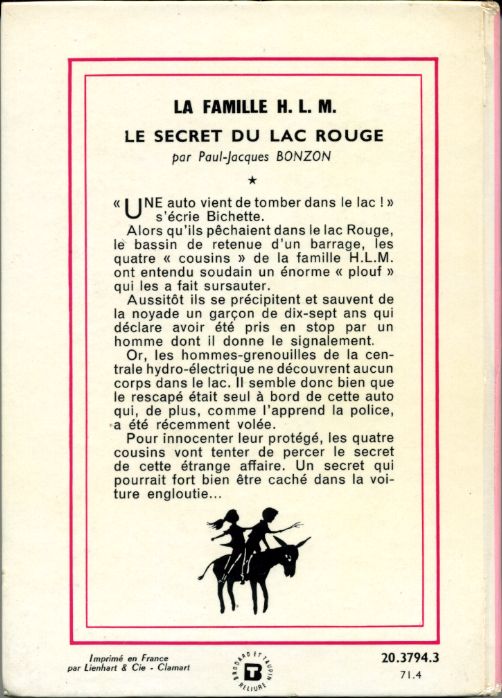 Le secret du lac rouge, by Paul-Jacques BONZON Hachette Nouvelle Bibliothèque rose Dépôt légal 1971