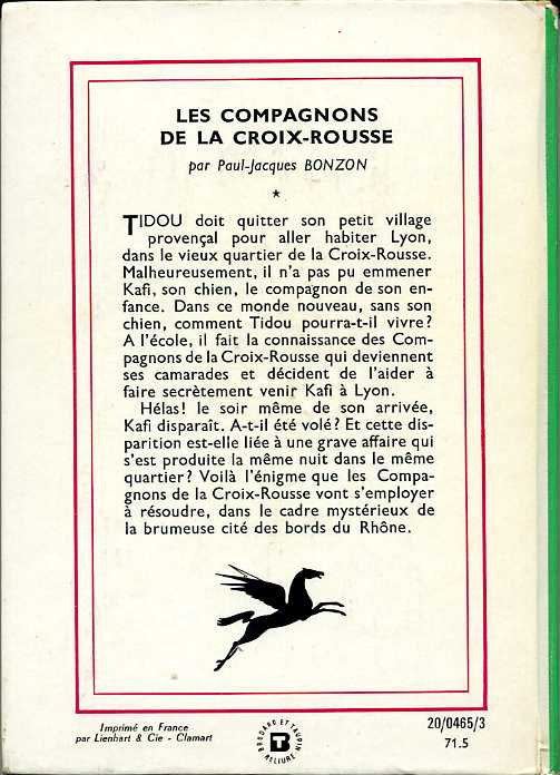 Les compagnons de la Croix-Rousse, by Paul Jacques BONZON Hachette Bibliothèque verte Dépôt légal 1971 – 1974