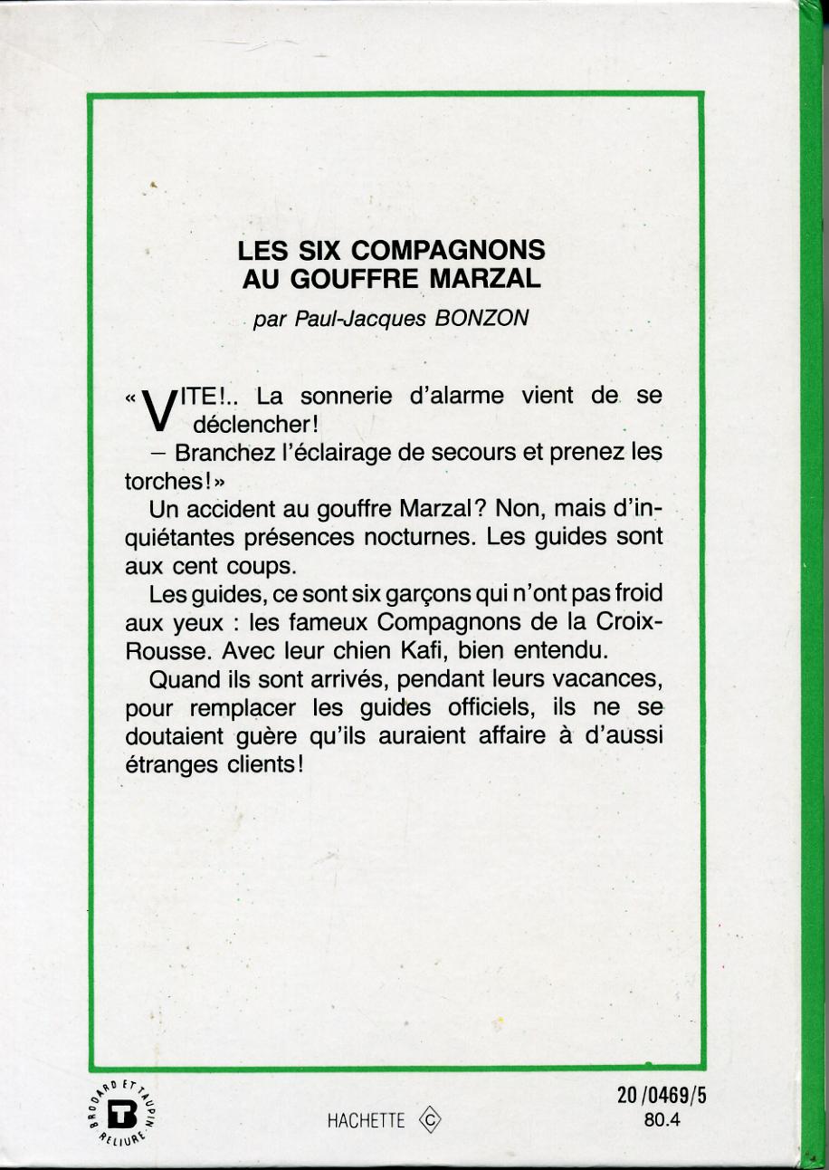 Les six compagnons au gouffre Marzal, by  Paul Jacques BONZON  Hachette Bibliothèque VERTE  Dépôt légal 1980Les six compagnons au gouffre Marzal, by Paul Jacques BONZON Hachette Bibliothèque VERTE Dépôt légal 1980