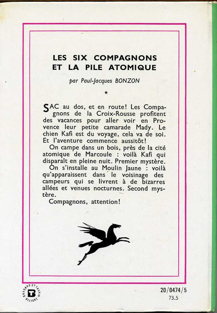 Les six compagnons et la pile atomique, by Paul Jacques BONZON Hachette Bibliothèque verte Dépôt légal 1973