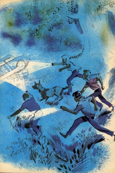 Lampe au poing, tous quatre se précipitèrent.   p. 32