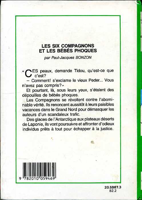 Les Six compagnons et les bébés phoques, by Paul Jacques BONZON Hachette Bibliothèque VERTE Dépôt légal 1982