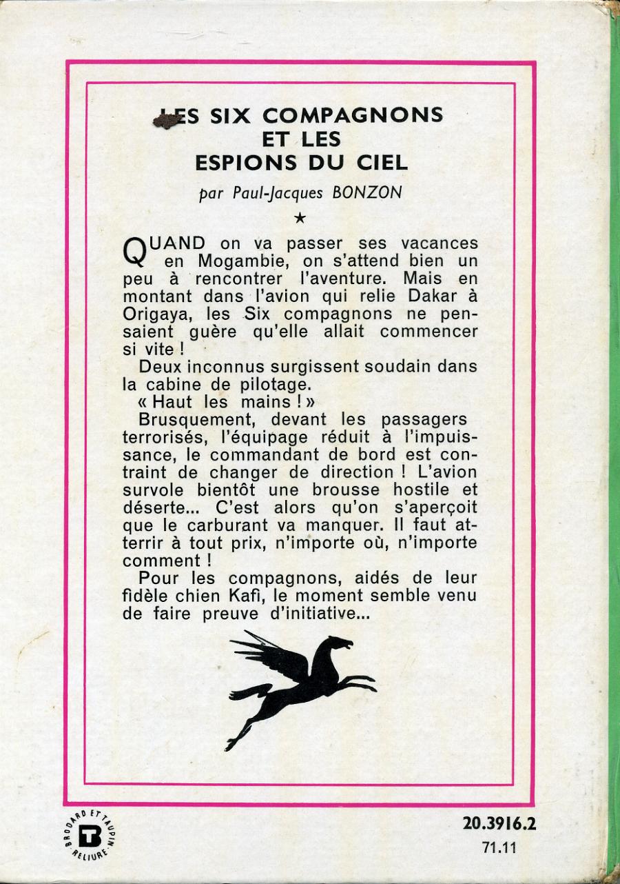 Les six compagnons et les espions du ciel, by Paul Jacques BONZON Hachette Bibliothèque verte Dépôt légal 1971