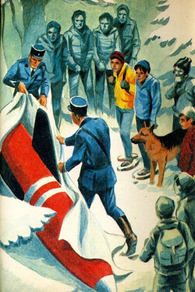 « Non, souffla Gnafron, le doigt tendu. Regardez à gauche; de drôles d’empreintes, pas celles de skis.
