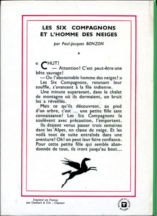 Les six compagnons et l’homme des neiges, by Paul Jacques BONZON Hachette Bibliothèque verte n°246 Dépôt légal 64-68-1969