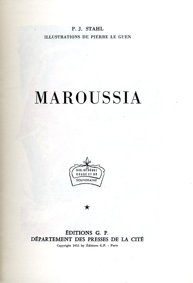 Maroussa by P.-J. STAHL Editions G. P. Département des Presses de la Cité Bibliothèque Rouge et Or souveraine Juin 1955
