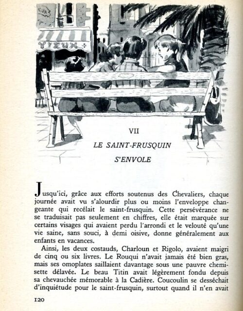 – Le Rouqui doit être sur la cale, nous le ramasserons en passant, décida Charloun. Coucoulin et sa sœur nous rejoindront sur le terrain… En avant!
