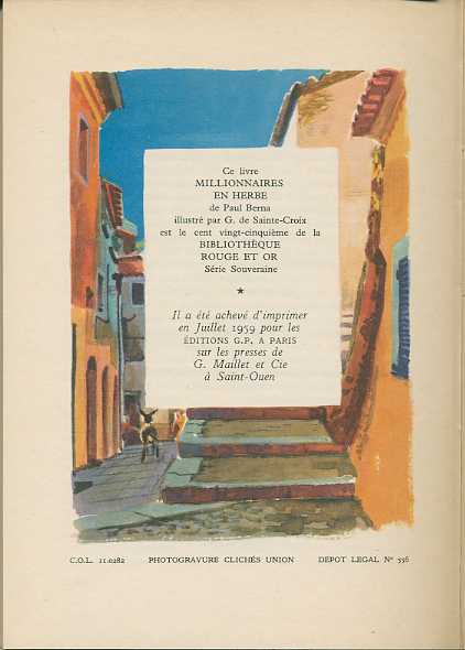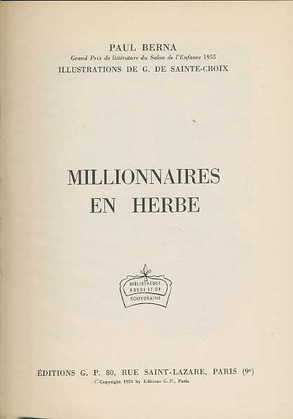 Millionnaires en herbe by Paul BERNA Editions G. P. Paris Bibliothèque Rouge et Or Souveraine 1959
