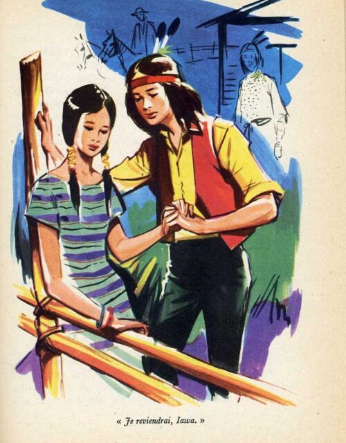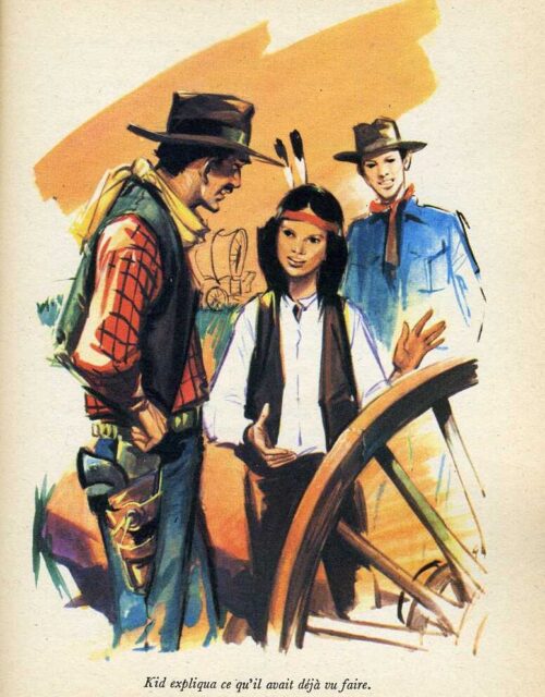 Kid s’approcha de son amie. Il n’était pas tendre, Red Kid. Il avait déjà la rudesse des hommes de sa race. Pourtzant, il vit le désarroi de celle qui avait vécu près de lui comme une soeur. Le coeur lourd, il prit gauchement la main de Iawa.