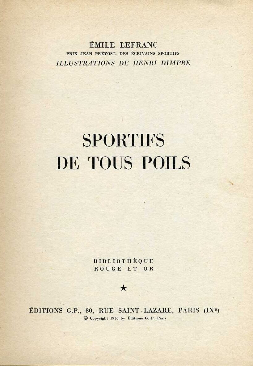 Sportifs de tous poils, by Emile LEFRANC Editions G.P.Paris Bibliothèque Rouge et Or
